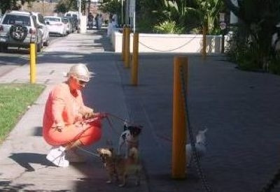 몇 번 마주치면 여자들이 자기만한 개와 있어도 두려움이 생기지 않는다.