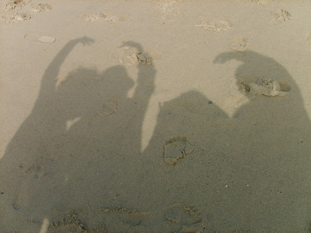 식사 후 해변으로! 모래사장이 참으로 넓다. 겨울이라 사람이 많지는 않지만 모두 일광욕이다. 우리나라와 달리 미국 시민들은 참 벗는 것을 좋아한다. 선글라스 속의 눈이 호강한다. 미국에서 늘씬한 몸매는 부의 상징이란다. 운동할 여유! 거리 어느 곳에서나 벗고 달리는 모습들을 볼 수 있다. 배가 약간 나온 것을 부의 상징이라 여겼던 배고프게 자란 우리 세대에겐 이해하기 힘든 세계다. 그 한 곳에 갈매기에게 모이를 주는 노인이 보인다. 은퇴한 분 이리라. 동병상련의 정과 함께 부유한 곳에 살 수 있는 여유가 부럽다. 이 곳은 미국의 서쪽 끝. 태평양 연안이다. 한국과 가장 가까운 곳이라 생각하는 동포들의 향수를 달래 주는 곳이란다. 여행기분과 자유스러운 분위기에 아내와 기분도 좀 내 보았다. 환갑 전후 노인들의 하트!