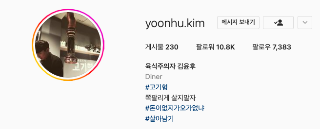 그렇게 고기형 김윤후 대표님 인스타그램을 꾸준히 보게 되었다. 솔직히 말하면 다른 인스타그램처럼 사진이 예쁘다거나 유머 넘치는 포스팅이 올라오지 않는다. 하지만 고기에 관한 열정만큼은 누구보다 크다는 걸 항상 느낄 수 있었다.
