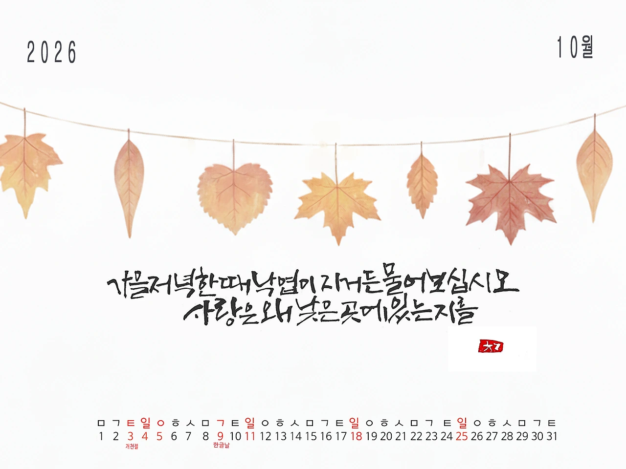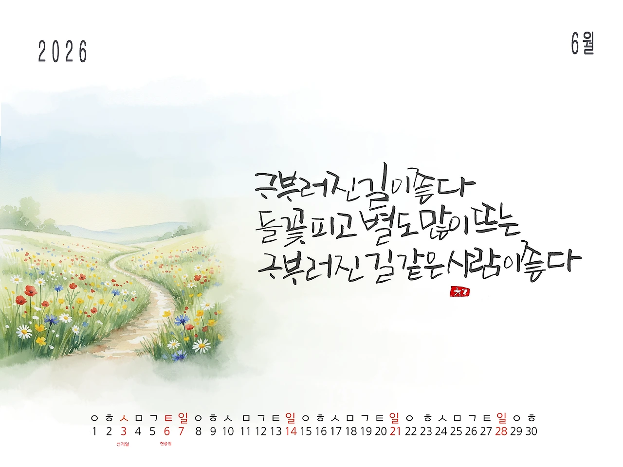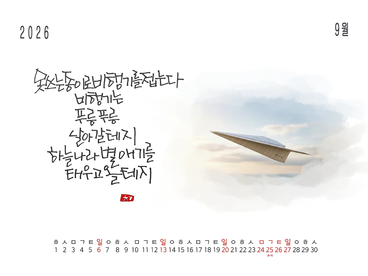 #2026 #달력 #캘리그라피 #새해첫기적 #춘설 #봄날 #너에게쓴다 #단짝 #구부러진길 #풍경달다 #능금 #종이비행기 #가을엽서 #십일월 #호주머니 #새해