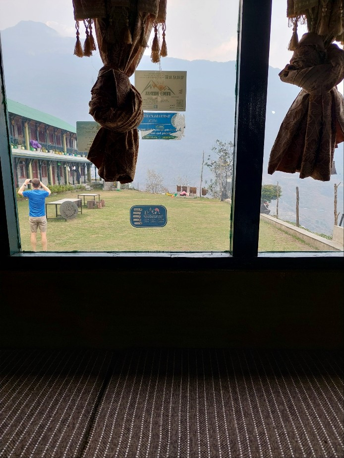 도착한 사람들 마다 젖은 신발을 숙소 앞에 내놓고 우비와 젖은 옷 등을 방 앞 빨랫줄에 죽 걸으니 롯지 앞에 타르초를 걸어놓은 듯한 풍경이 펼쳐진다.