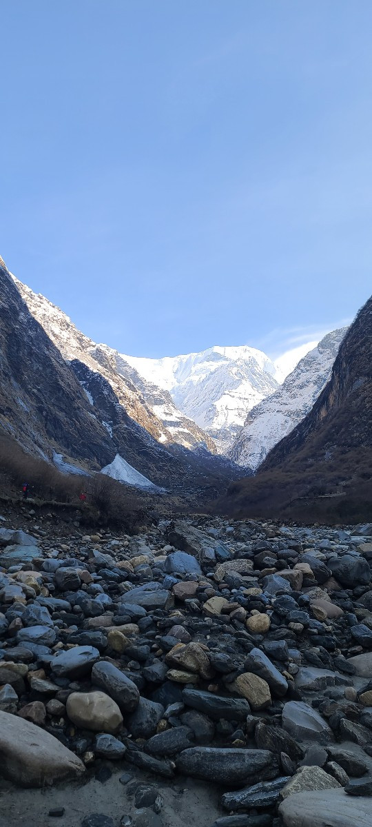 그러면서 히운출리(6441m)처럼 조금 낮은 것은 출리라는 이름이 붙는다니, 5~6000은 넘어야 이름도 생기나 보다. 그러다 알게 된 사실, 우리가 가고 있는 ABC는 히운출리 아래에 있다는 것이다 (안나푸르나를 정면으로 보았을 때 왼쪽으로 안나푸르나 남봉이 있고 그 왼쪽 앞쪽으로 히운출리가 있다). ABC는 안나푸르나 아래 있을 거라는 나의 통념이 훅 무너지는 순간이다. 안나푸르나에 더 가까이 접근하는 것은 허가를 받은 전문산악인들만 가능한 모양이다.