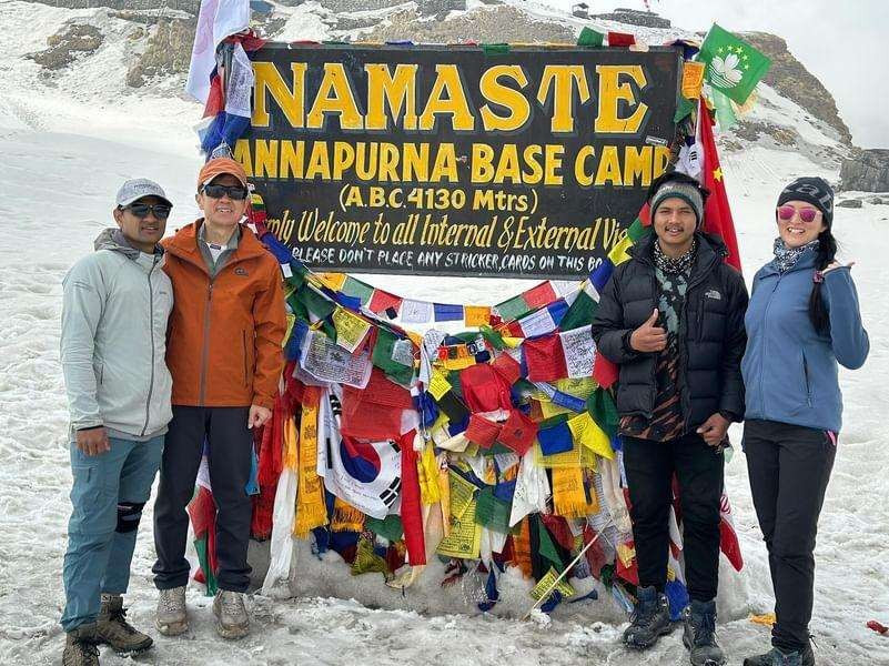천천히 천천히 걸어도 길은 끝이 나고, ABC롯지들이 눈에 들어오고, 그 앞에 서 있는 이곳을 들른 모두의 사진 배경이 되는 안나푸르나베이스캠프 안내판에 도착한다. 이미 구름이 먼저 도착해 봉우리들은 다 가려 놓았다. 살짝 안타까운 마음이 스치기도 했지만 내일 오전에는 맑게 시야를 열어 주리라 굳게 믿고 기념사진을 찍어본다.