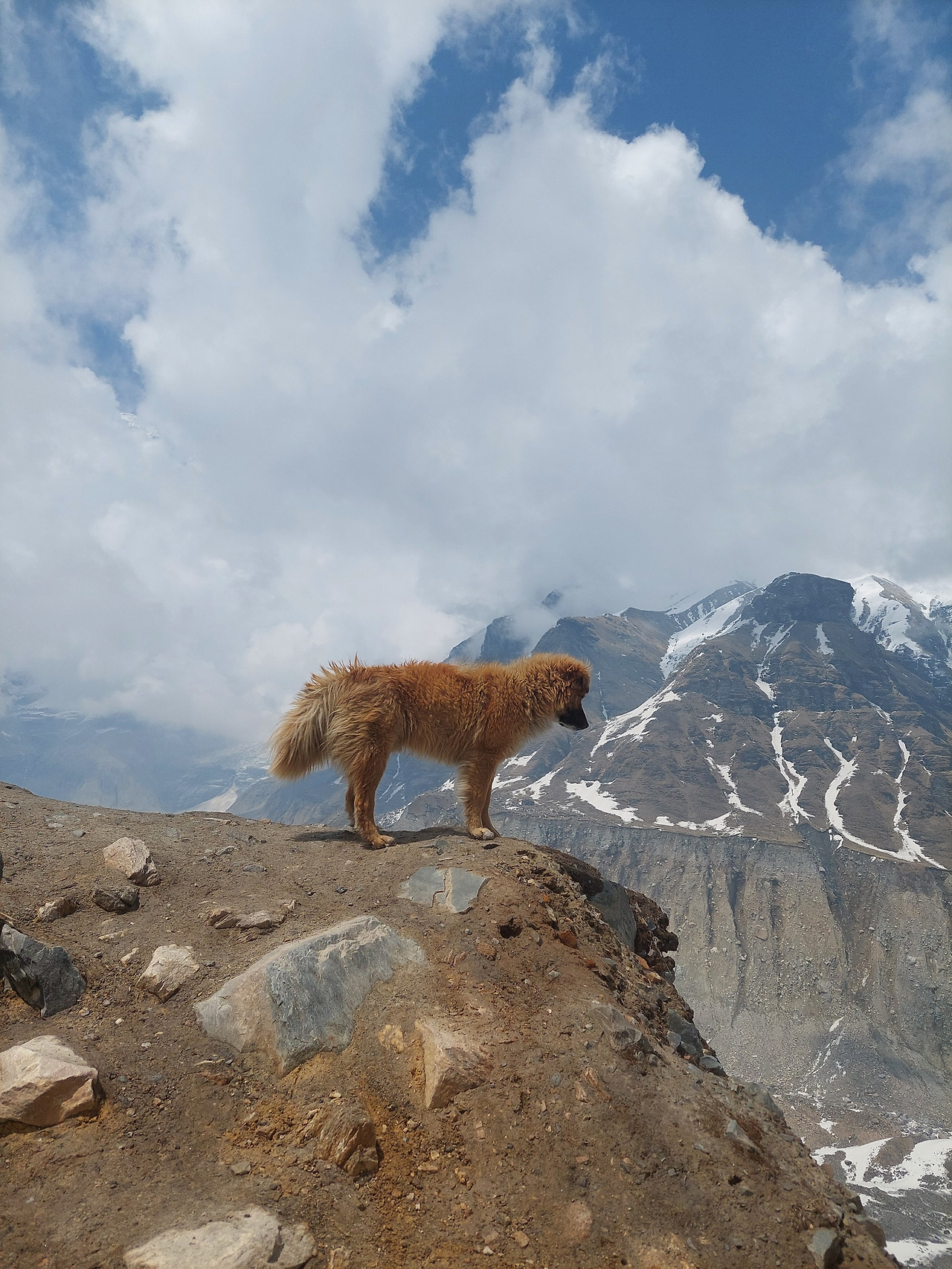 드디어 머릿속에 그려오던 길을 걸어가게 된다. 설산들이 만들어 내는 그 거대한 장관과 어젯밤 내린 비로 쾌청해진 파란 하늘 사이를 걷는 길은 행복감으로 가득 차 있다.