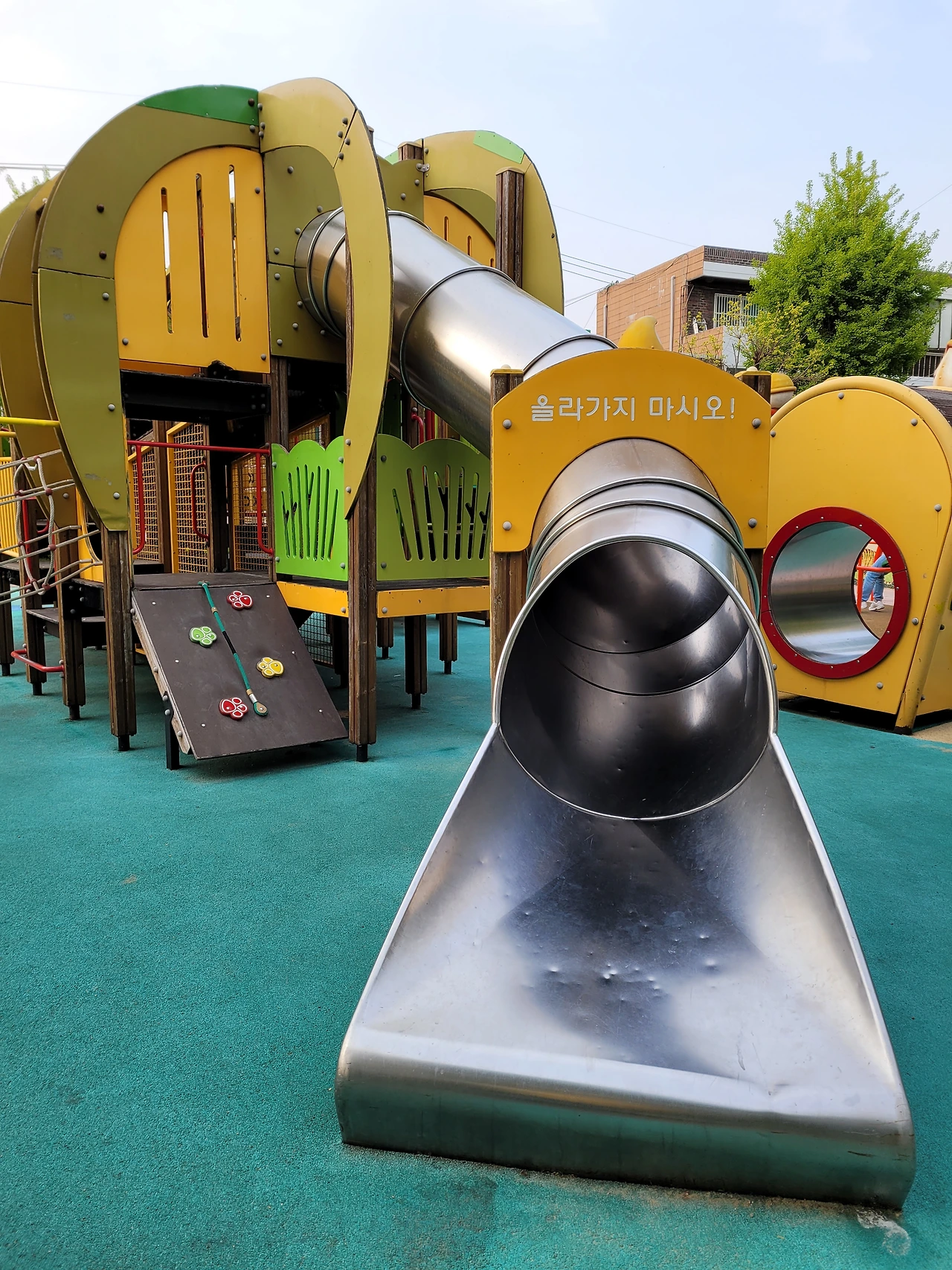 이 미끄럼은 우리 동네에서 제일 무서운 미끄럼틀이다. 내가 무게가 있어서 그런지 착지를 할 때면 몸이 붕 날아오르기 때문에 항상 긴장이 된다. 율이가 잡아 끄는 바람에 억지로 꼭대기에 올라가서 흐느적거리며 몸을 실었다. 그리고 몸에 힘을 주고 균형을 잡으며 땅에 착지하는 순간! 신기하게 몸에 힘이 생기기 시작했다. 그리고 속상한 마음이 몸 밖으로 조금 떨어져 나가는 것 같았다.