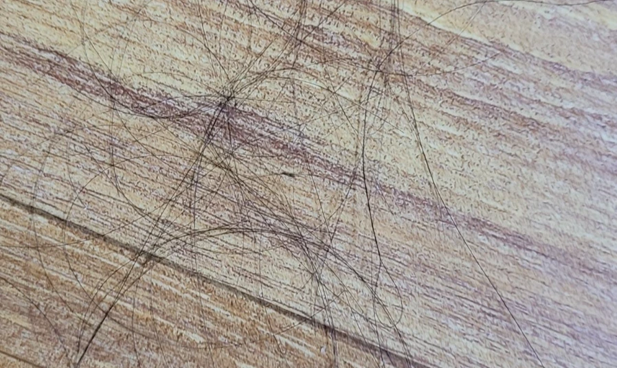 그리고 자신의 머리를 때리더니 머리카락을 뽑기 시작한다.