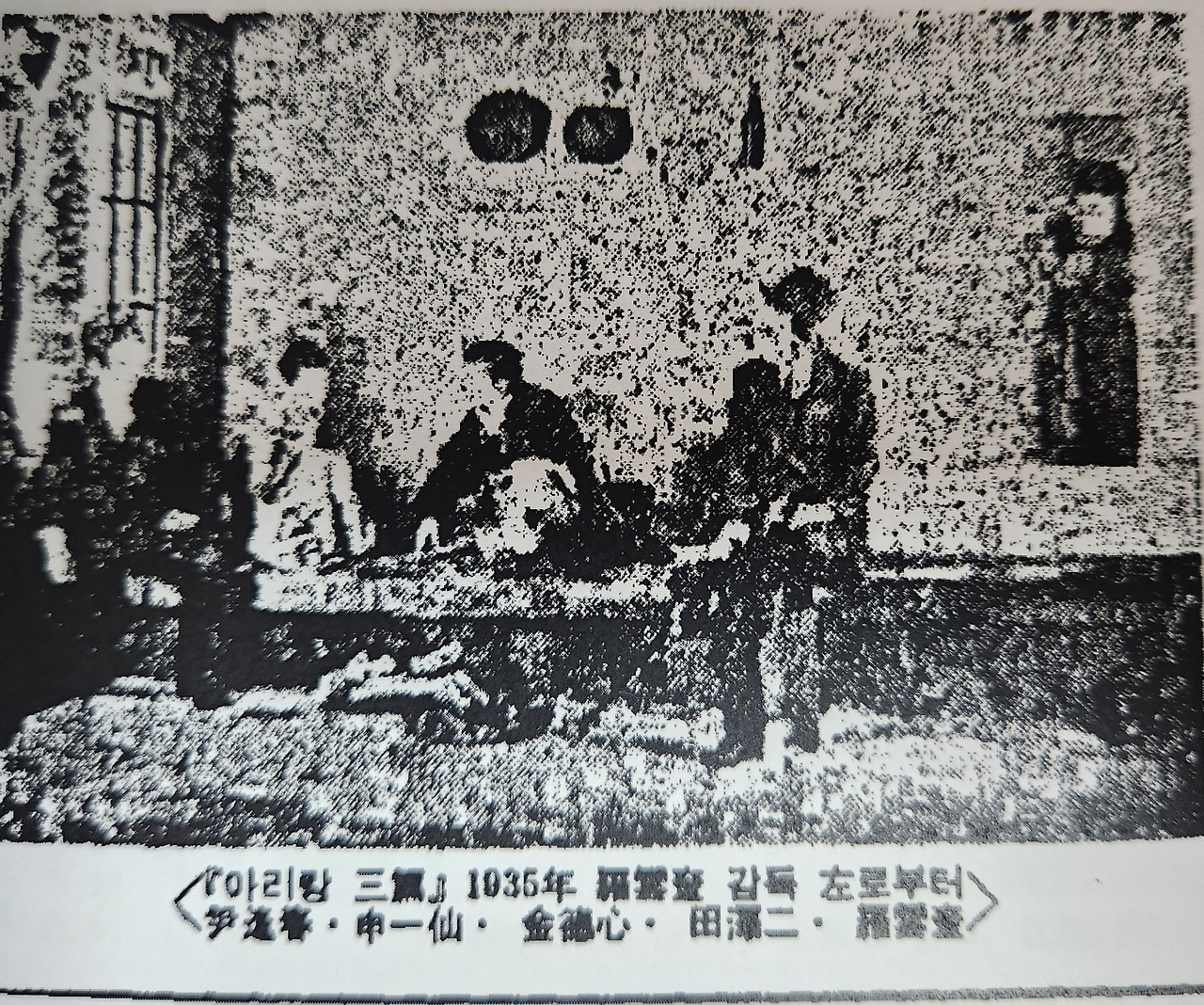 <아리랑 3편>(1935, 나운규 감독). 왼쪽부터 윤봉춘, 신일선, 전택이, 나운규.