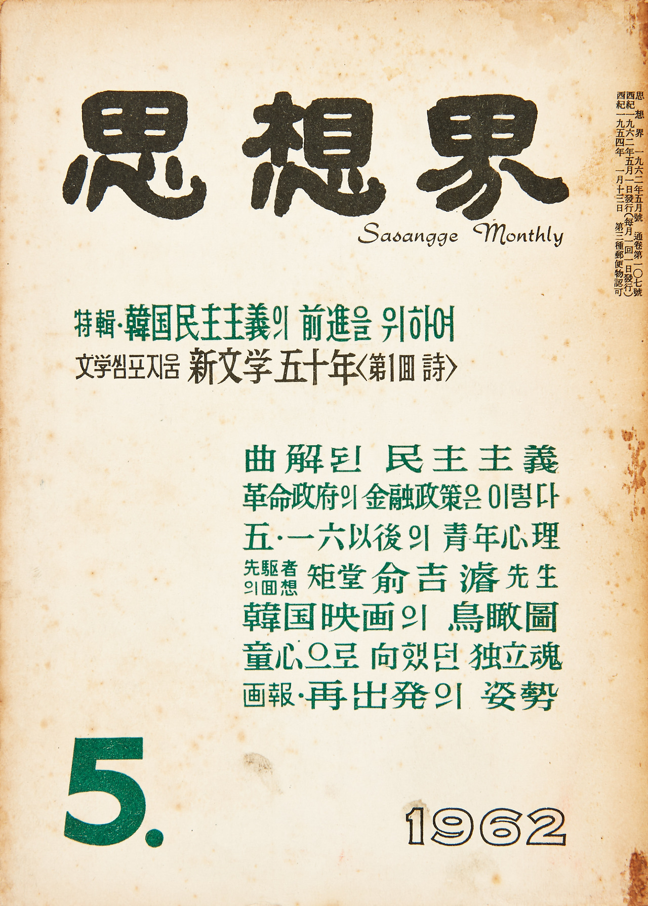 노만의 <저항속에 싹터온 한국영화>가 수록된 잡지《사상계》1962년 5월호 표지. ⓒ 대한민국역사박물관.