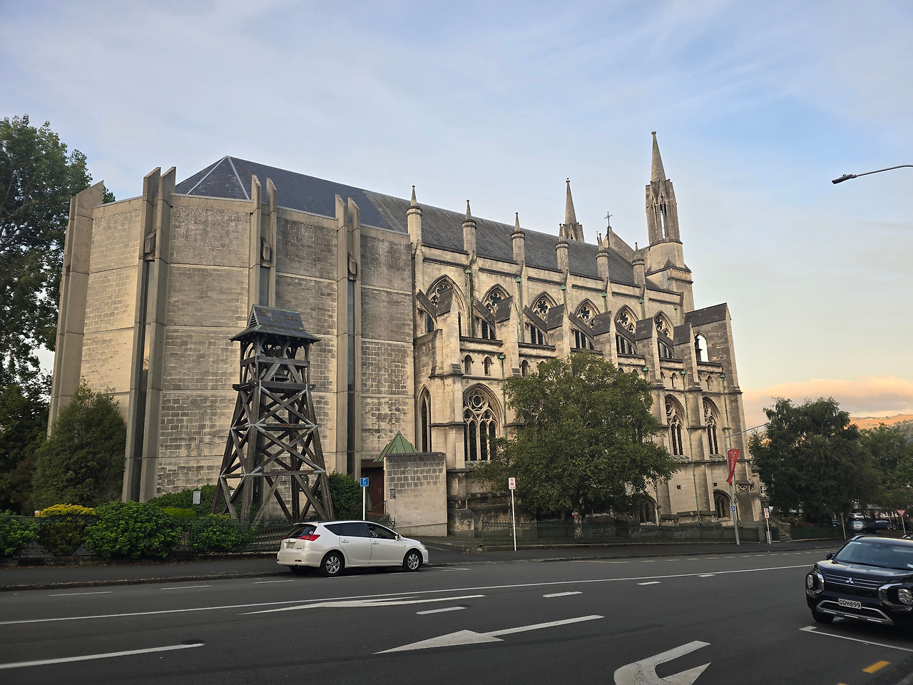 더니든 도심 옥타곤 광장에 서서 세인트폴 교회를 올려다봤다.