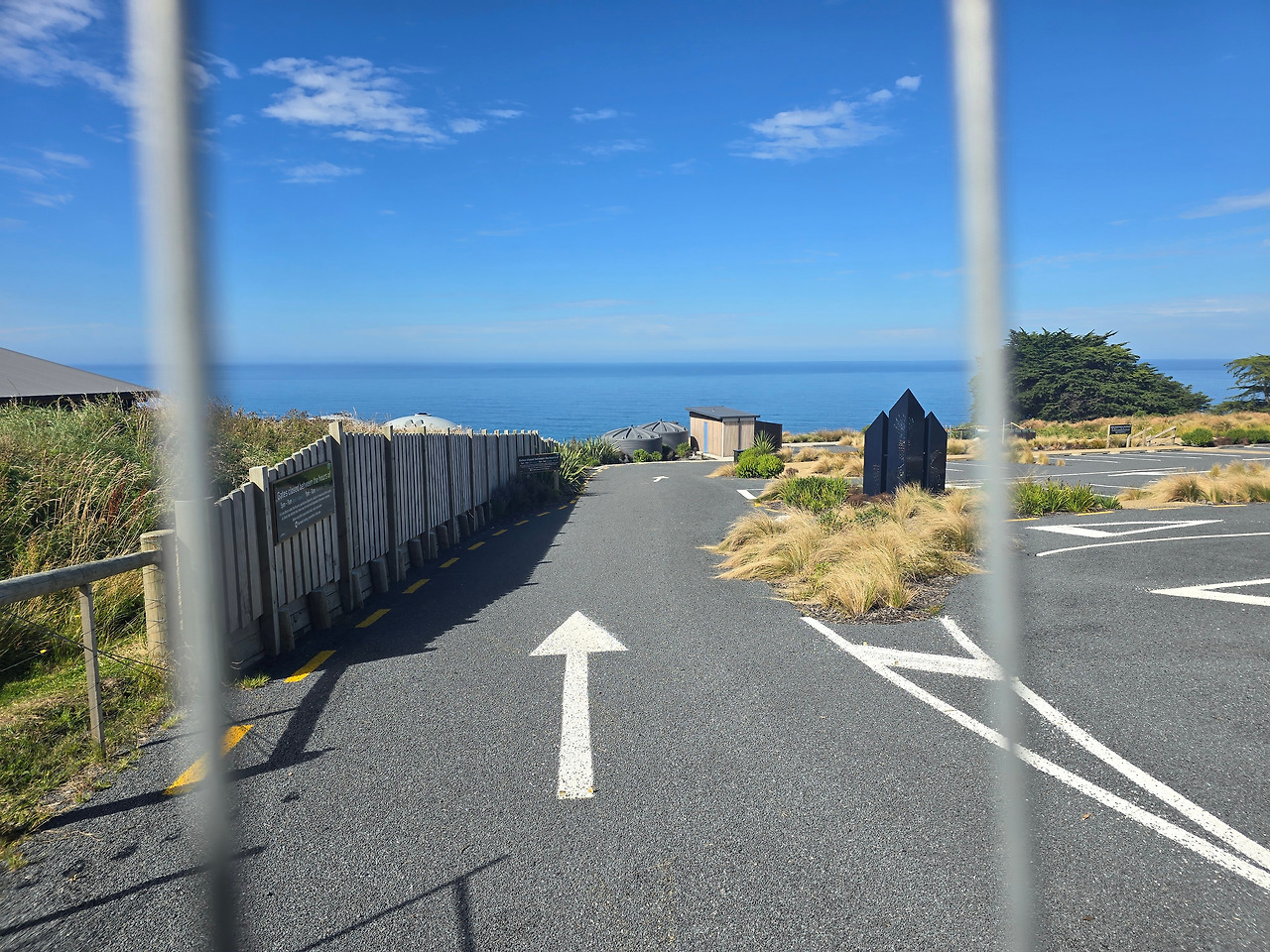 당초 오타고반도의 터널비치를 찾아왔지만, 공사 중이라는 안내판 앞에서 실망하고 말았다.