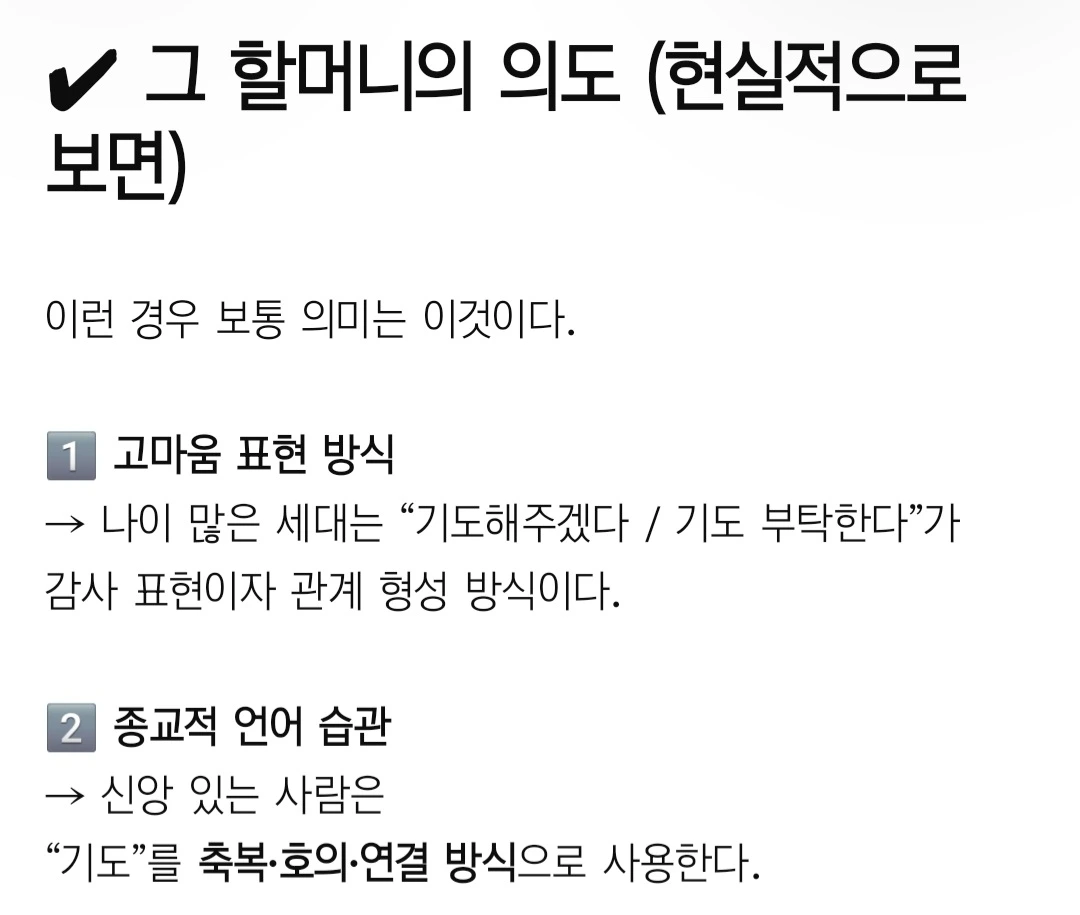 그러고 나서 가려던 길에 할머님이 아가씨, 하고 멈춰 세우시면서 '혹시 교회 다니냐고, 교회 다니면 기도를 부탁하려고 했다'는 말을 하셨다. 나는 실제로 교회를 다니지 않아서 다니지 않는다고 말했고, 별 생각 없이 집으로 왔다.