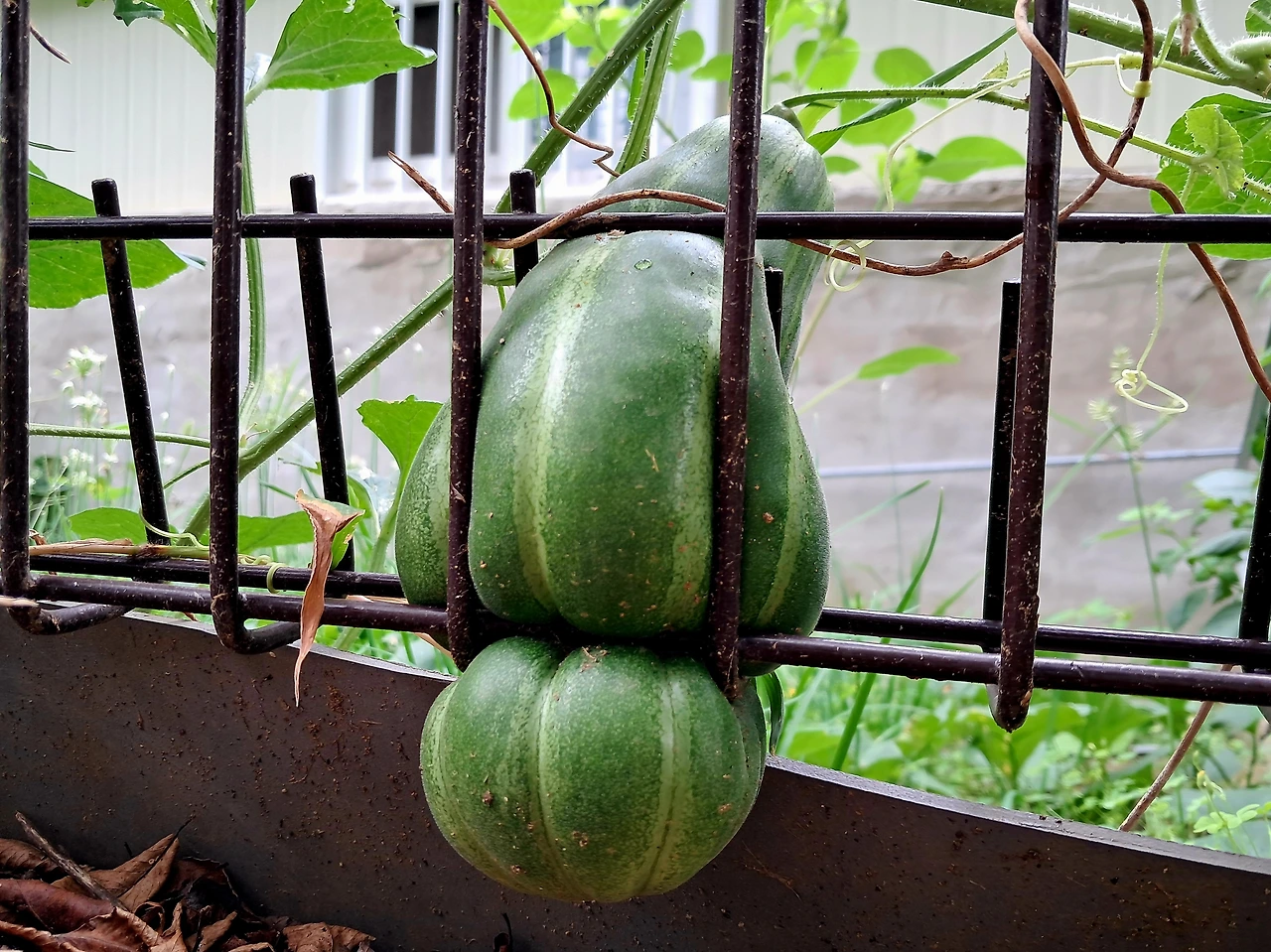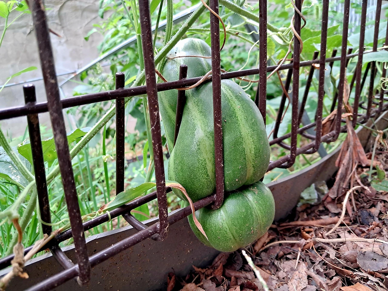 며칠 전 산책하면서 우연히 봤던 기특한 (?) 호박입니다. 철창살에 끼인 채로 성장한 호박입니다. 호박은 불행한 환경을 이겨냈네요.