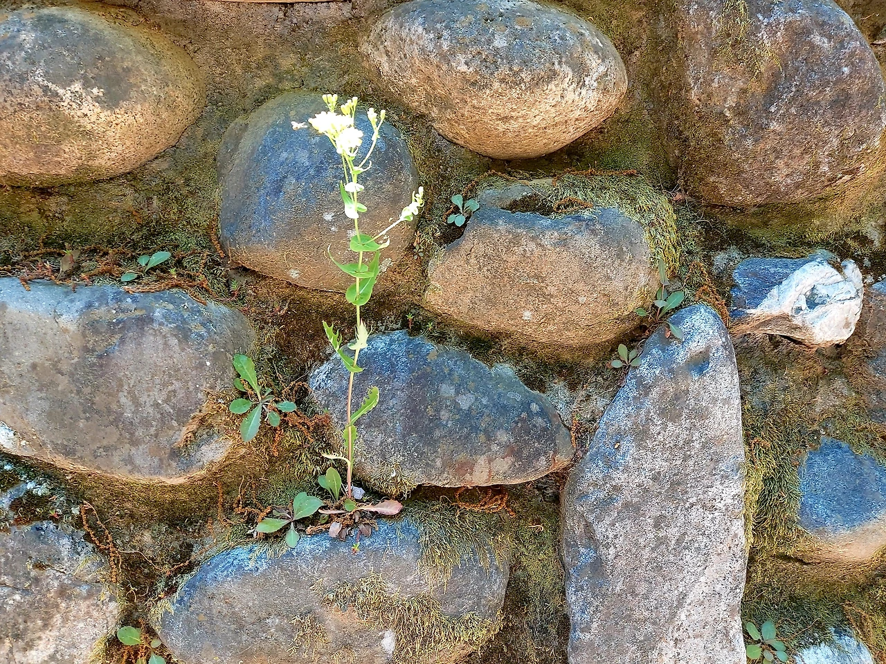 들꽃에게는 돌담도 부족함이 없는 환경이었나 봐요. 상황을 바꿀 수는 없지만, 상황을 바라보는 관점은 바꿀 수 있습니다. 상황이 나쁘다고 두려워 마세요. 관점이 바뀌면 다른 길이 보입니다. 들꽃도 잘 이겨냈잖아요. 우리 안에는 들꽃과 같은 의지가 숨어 있습니다.