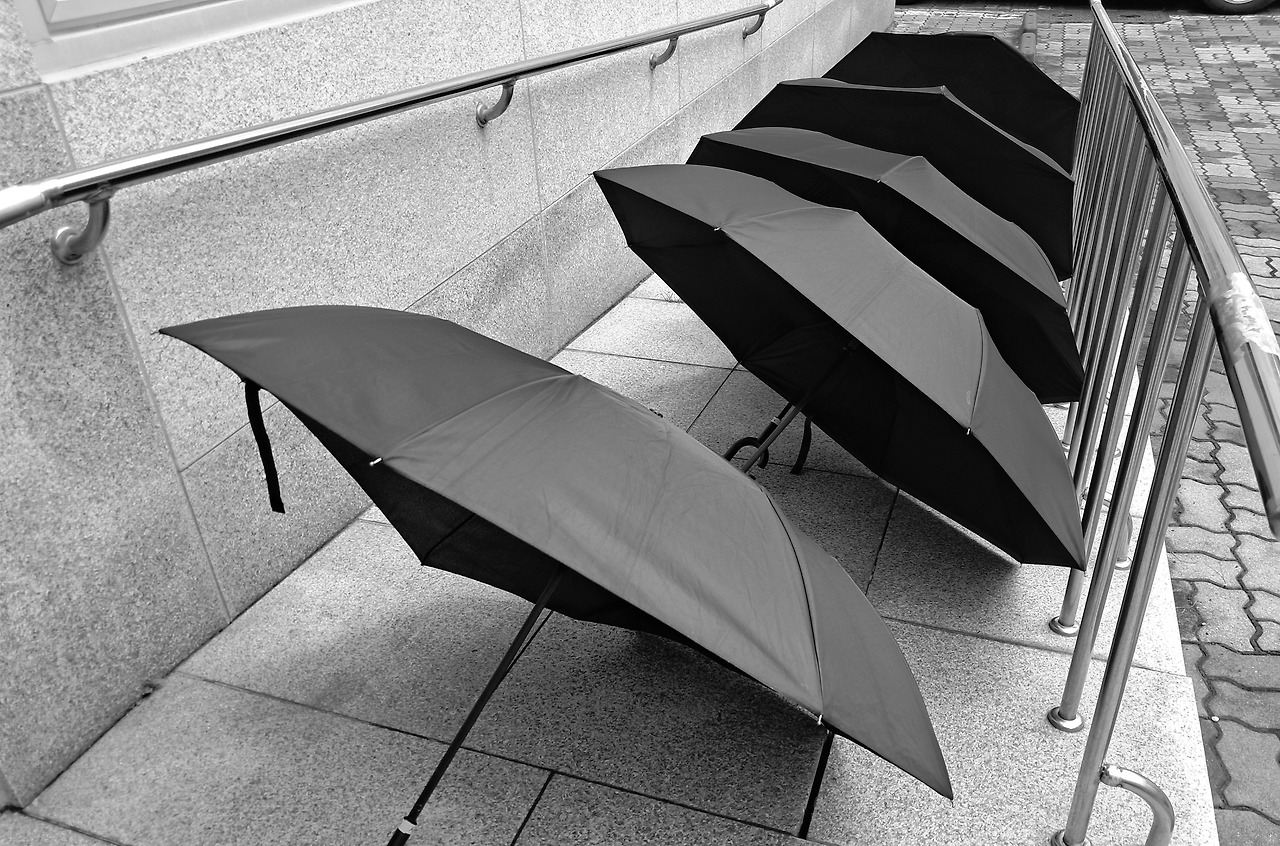 회사 사무실에 공동으로 사용하는 우산 5개가 있습니다. 장맛비에 우산은 자기 역할을 톡톡히 했습니다. 햇빛이 짱짱한 날이 되자, 젖은 우산은 짐짝처럼 바닥에 버려졌습니다.