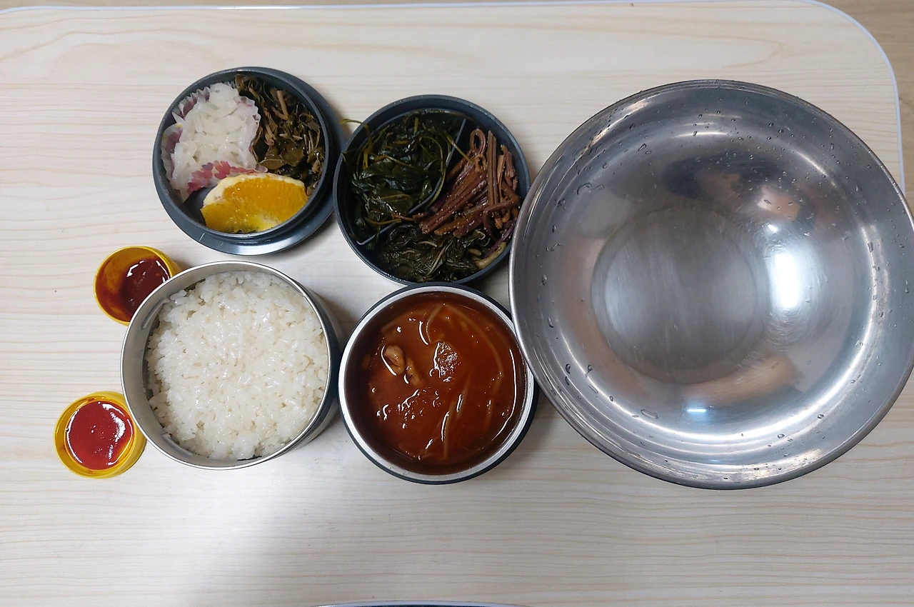 주말이지만 도시락을 준비해서 출근했다. 혼자 먹는 점심이지만 나물 반찬의 식감을 느끼며 고요하게 식사하는 시간이 참 좋다.