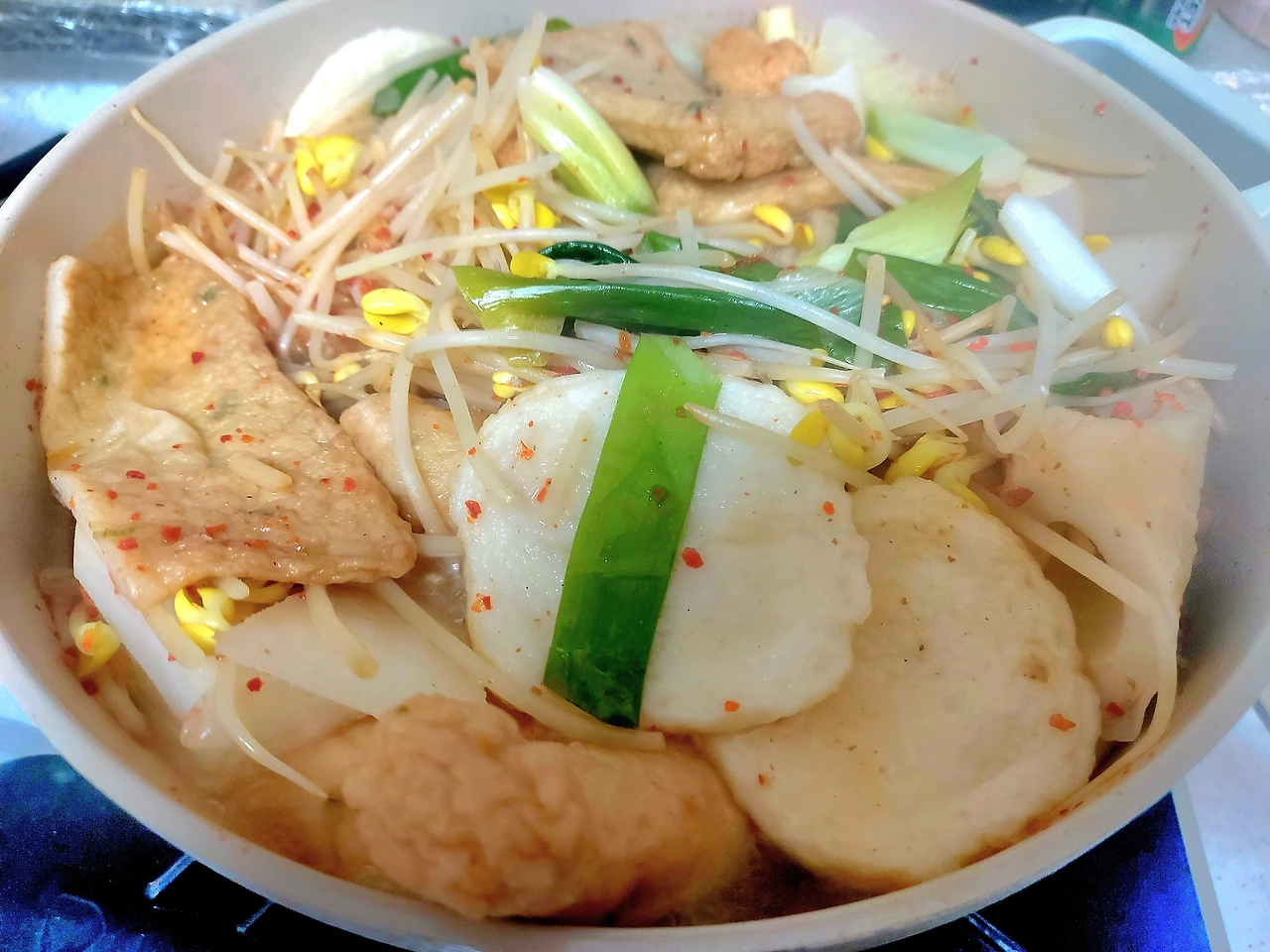 상하기 직전의 콩나물을 넣어서 어묵탕을 만들었다. 남은 어묵은 다음 날 도시락 통에 넣어갔다.