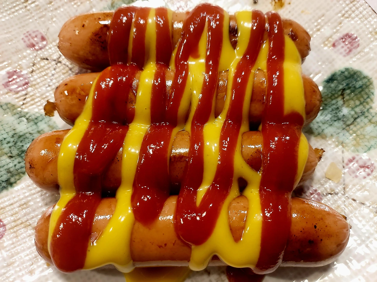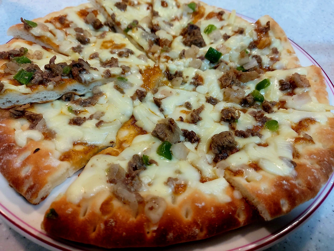 아이들과 같이 소시지, 피자를 먹었다.
