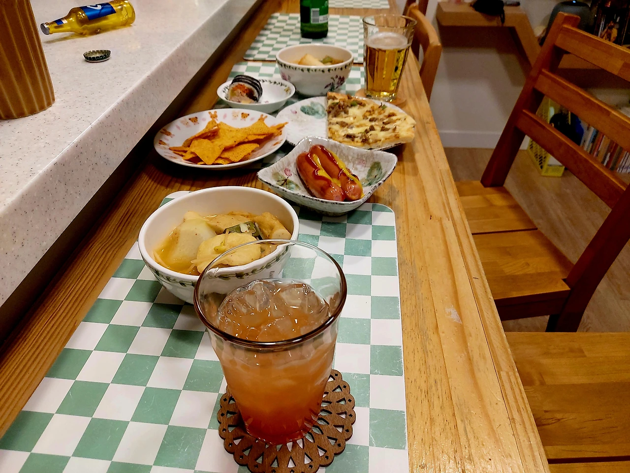 나 : 집에서 먹자. 어묵만 마트에서 사서와