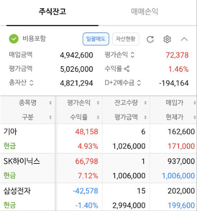 준비를 마치고 장이 열렸다. 시작은 좋았으나, 결과는 참담했다. 개장 직후 삼성전자가 20만 2,000원을 터치하며 자동 매수됐다. 악몽의 서막이었다. 삼성전자는 곧장 내리막을 탔다.