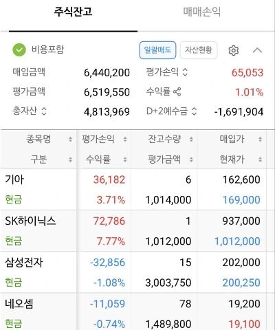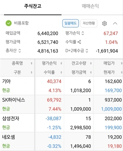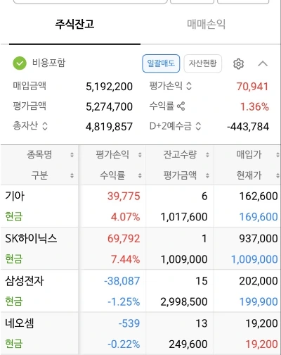 삼성전자의 종가는 19만 9,400원. 20만 원 선이 무너졌다. 1만 9,200원에 진입한 네오셈 역시 1만 9,100원으로 마감했다. 삼성전자에 300만 원, 네오셈에 150만 원이라는 거금이 투입된 상태에서 나온 결과였다.