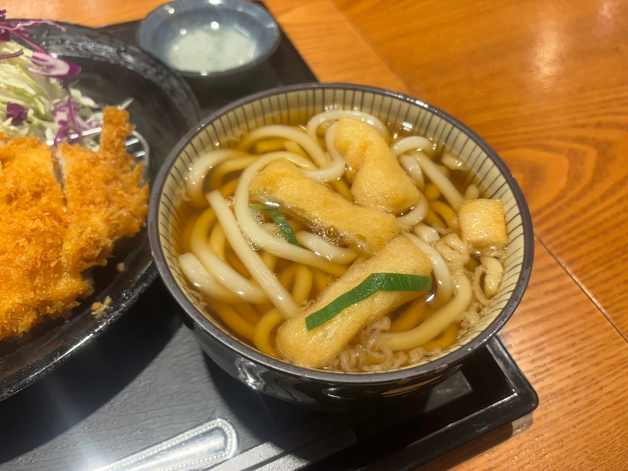 메뉴 구성이 기가 막혔다. 특히 비가 오는 날에는 딱이었다. 맛은 무난했다. 기본에 충실한 맛. 무엇보다 비 오는, 조금 쌀쌀한 날에 먹기 좋은 미니 우동이 있었다. 안 시킬 이유가 없었다. 게다가 미니 우동이라지만 꽤 실했다.