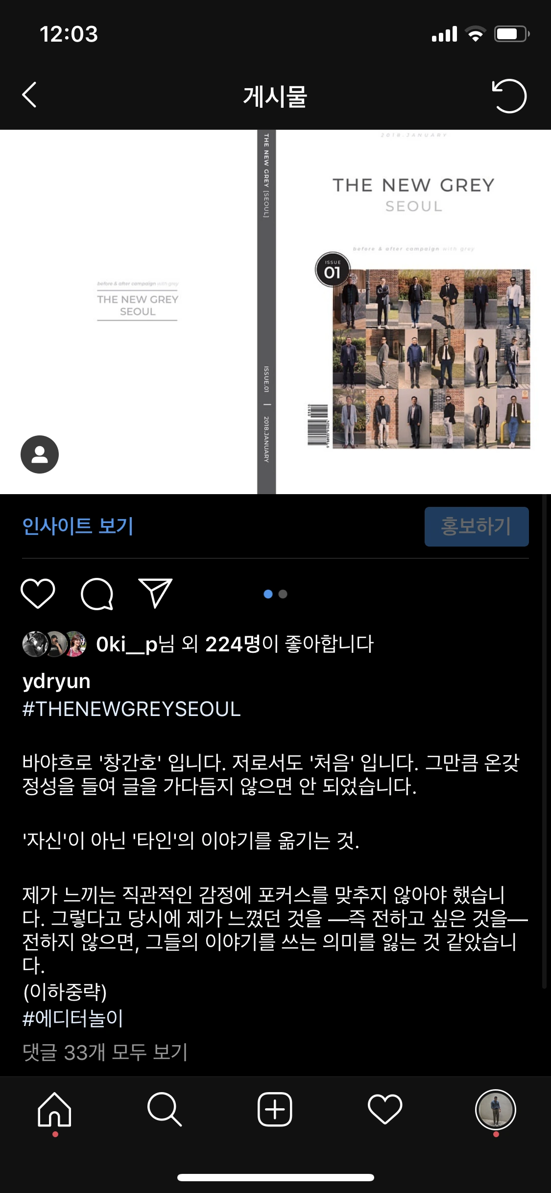 형과 나는 결국 그렇게 번 돈으로 아빠들 입힐 옷을 사고, 더뉴그레이 매거진 창간호 인쇄를 해냈다. 그야말로 백지 상태에서, 온몸으로 부딪혀서 만들어낸 첫번 째 성과였다. 그리고 '내가 하고자하는 일이 방향적으로 잘못되지 않았구나' 확신할 수 있었다.