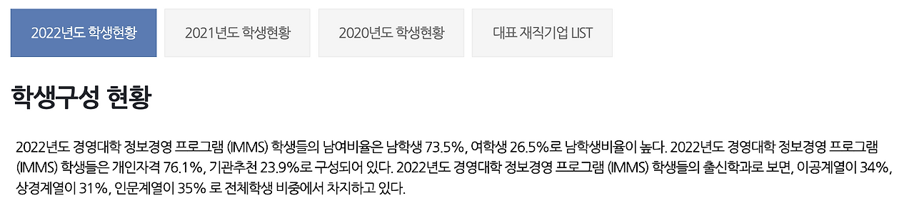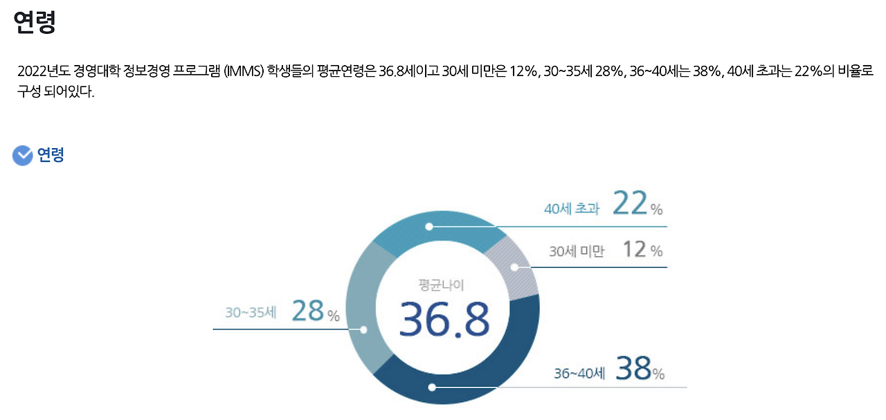 그리고 서류 불합격의 경험을 갖고 자기 확신에 힘이 조금은 빠진 상태로 준비했던 올해는 오히려 모든 과정이 수월하게 느껴졌다. 면접을 본 교수님들은 나를 반겨 주었고, 경력이 2년 수준이었던 작년에는 연차가 낮았지만 올해는 적기인 것 같으니 카이스트에 꼭 와 주었으면 한다는 호의적인 피드백도 주었다. 실제로 카이스트 IMMS 과정은 30세 미만이 12%, 그리고 3년 미만의 경력은 4% 수준으로 구성되어 있다.