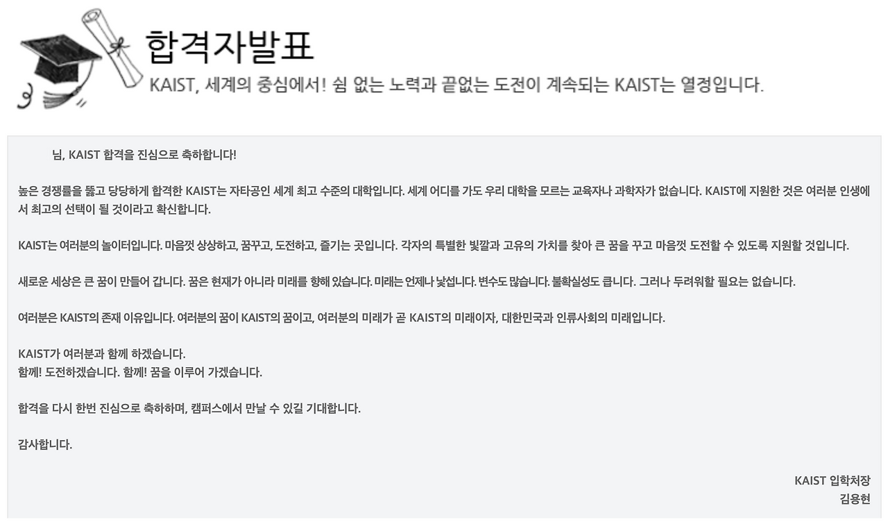 처음 지원서를 넣고 불합격했던 2022년에는 카이스트 IMMS 입학이 간절했다.