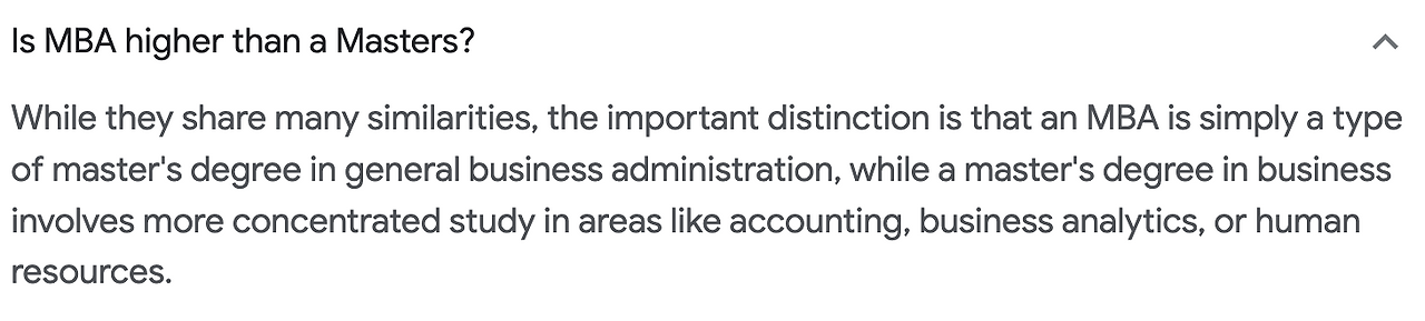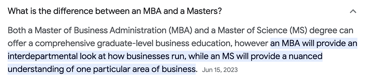 '보편적인' 경영학을 배우는 MBA 특성상 입학하는 학생의 경력을 보는 것은 합리적인 기준이다. MBA(Master of Business Administration)는 MS(Master of Science)와 달리, 특정한 영역을 한정해서 배우는 것이 아니기 때문에 케이스 스터디와 동문 네트워킹이 중요하다. MBA에 입학하는 학생들의 제1목표가 학문 수양이 아닌 네트워킹 및 취업이라는 것도 일반적 시선이다.