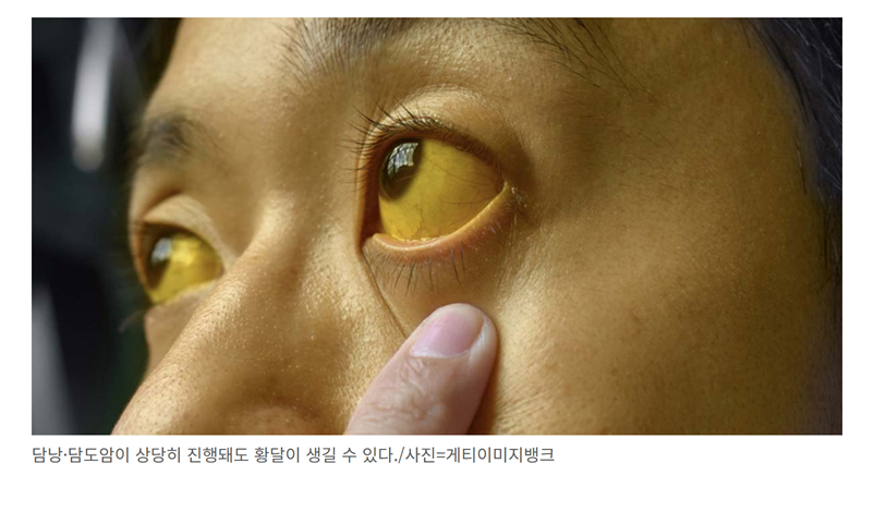 13. 피부가 노랗게 변하는 증상, 황달은 배출되어야 할 빌리루빈이 넘치고 넘쳐, 피부에 빌리루빈의 색이 나타난 것입니다.
