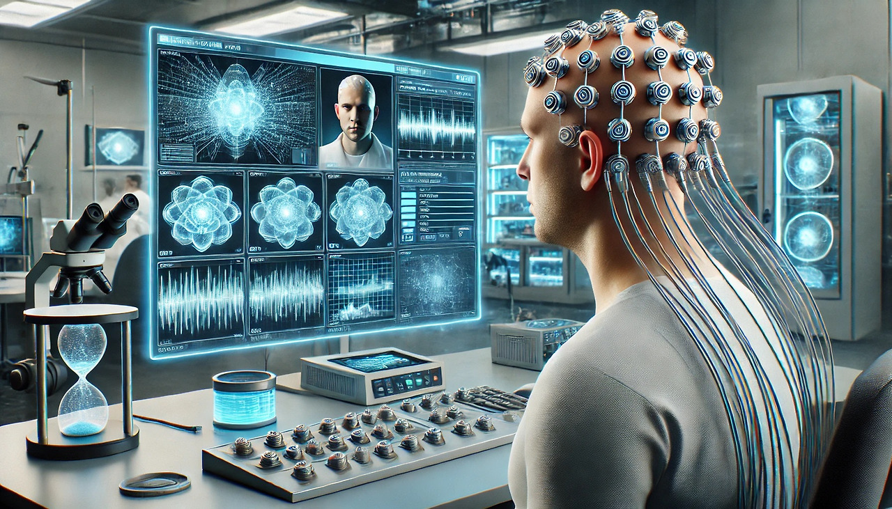 "이제 더 이상 몸 안에 칩을 심지 않아도 됩니다. 피부 밖에서도 뇌의 신호를 감지할 수 있게 되었기 때문입니다. 수신율을 높이고자 패드를 피부에 최대한 밀착하여 부착해야 하는 탓에, 실험자는 민머리가 되어야 했지만, 생각만으로 메시지를 보낼 수 있었고, 머릿속에 이미지를 떠올리는 것만으로도 화면에 사진이 띄워졌습니다.