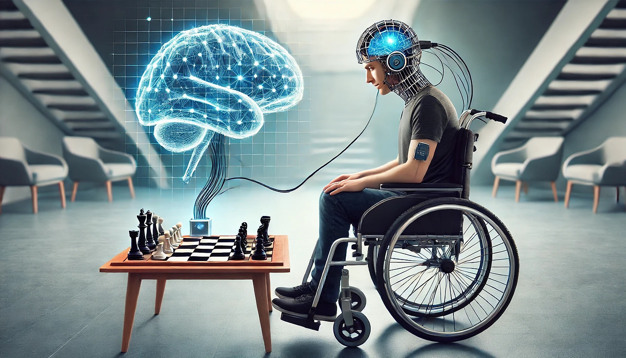 "2024년, ’뉴럴링크‘라는 회사에서 생각만으로 컴퓨터를 다룰 수 있는 칩을 개발해 사람에게 이식했습니다. 칩은 뇌에서 나온 전기신호를 기계에 전달하는 데 성공했습니다. 사고로 사지가 마비된 환자는 이식된 칩으로 컴퓨터를 조작해 게임을 할 수 있게 되었습니다.