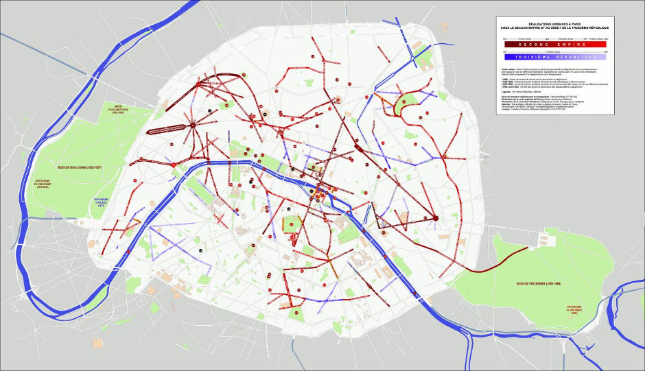 이로써 파리는 블로뉴 숲과 뱅센 숲을 비롯한 오픈스페이스에 의해 가능한 한 모든 곳에서 통풍이 되도록 한, 조직화(regularization) 원칙에 기반한 도시 시스템을 갖추게 되었다.