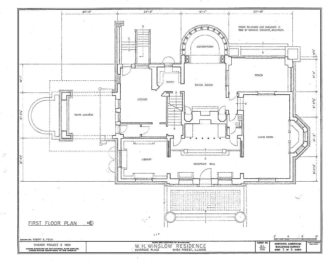 그랜트 카펜터 맨슨이 『1910년까지의 프랭크 로이드 라이트』(1958)에 썼듯, 여기서 라이트는 "여닫이 창문을 더 좋아해서 내리닫이를 버리고, 점을 찍어가듯 창문을 내는 방식에서 길고 가는 조각들로 창문을 내는 방식으로 전환하는 최종적인 변화를 준비하기 시작했다. 라이트만의 낮은 프레리 지붕이 이 작업에서 최초로 나타나며, 동시에 장식 테와 돌림띠가 보여주는 외관의 활기는 라이트의 스승 설리번의 영향이 지속되고 있음을 입증한다. (105p)
