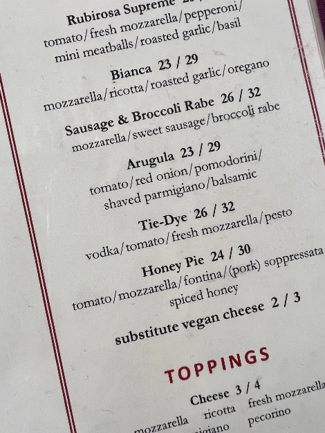 뉴욕 피자라고 자신 있게 외친 나의 발언과는 다르게, 루비로사 로고에 당당하게 그려진 이탈리안 마크 때문에 잠깐 살짝 자신감에 힘을 잃었지만, 1900년도 초 이탈리아 나폴리 출신 이주민이 뉴욕에 정착해서 만든 피자가 뉴욕 피자의 시초이니 어쩌면 당연한 걸지도.