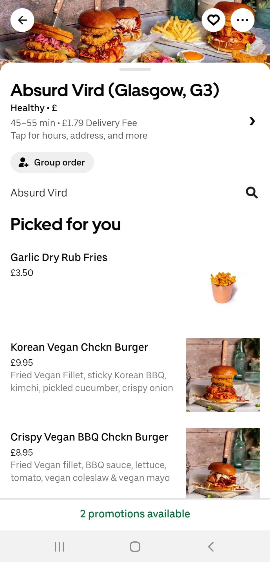 (왼쪽) 코리안 비건 치킨 버거에 김치가 들어간다고...? 한국에서도 김치 들어간 버거는 못먹어봤다!! (오른쪽) 우버이츠 카테고리에 한식이 있다. 참 친절하기도 하다.