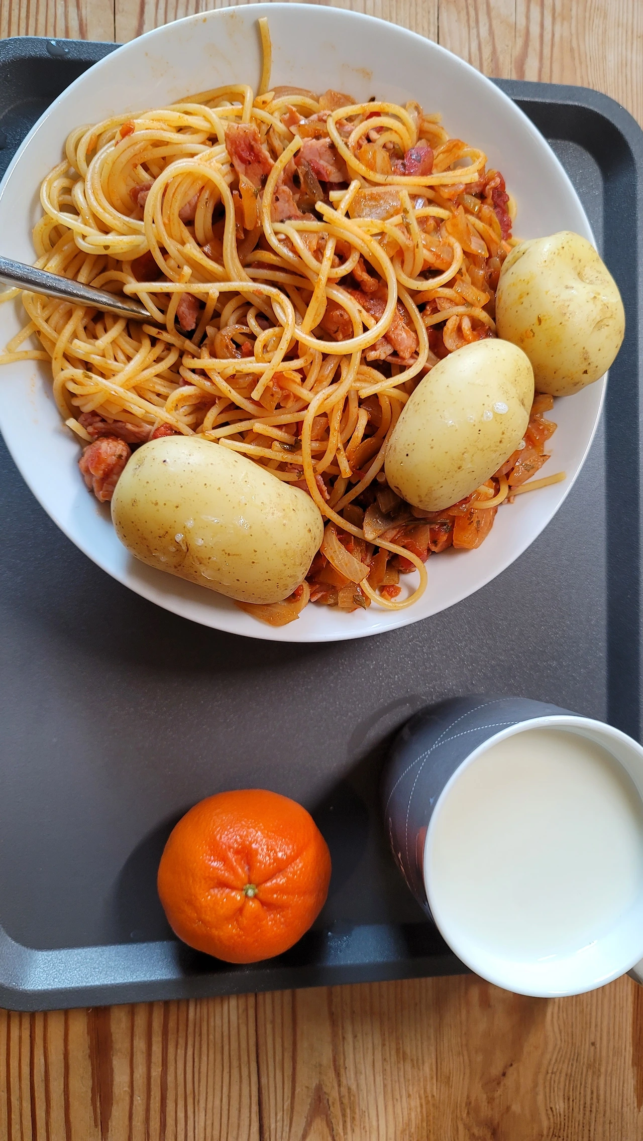 이것저것 사러 Sainsbury's에 들렀다. 작은 동네 마트 느낌이었다. 반가운 라면이 보여서 사진을 찍었다. 과일은 한국보다 싼 편이다. 한국 마을 시장에서 파는 과일들보다 비슷하거나 살짝 싼 가격이다. 여러 음식 재료들을 사들고 숙소에 와서 점심을 해 먹었다. 양파, 베이컨과 버섯이 추가된 업그레이드된 스파게티다.