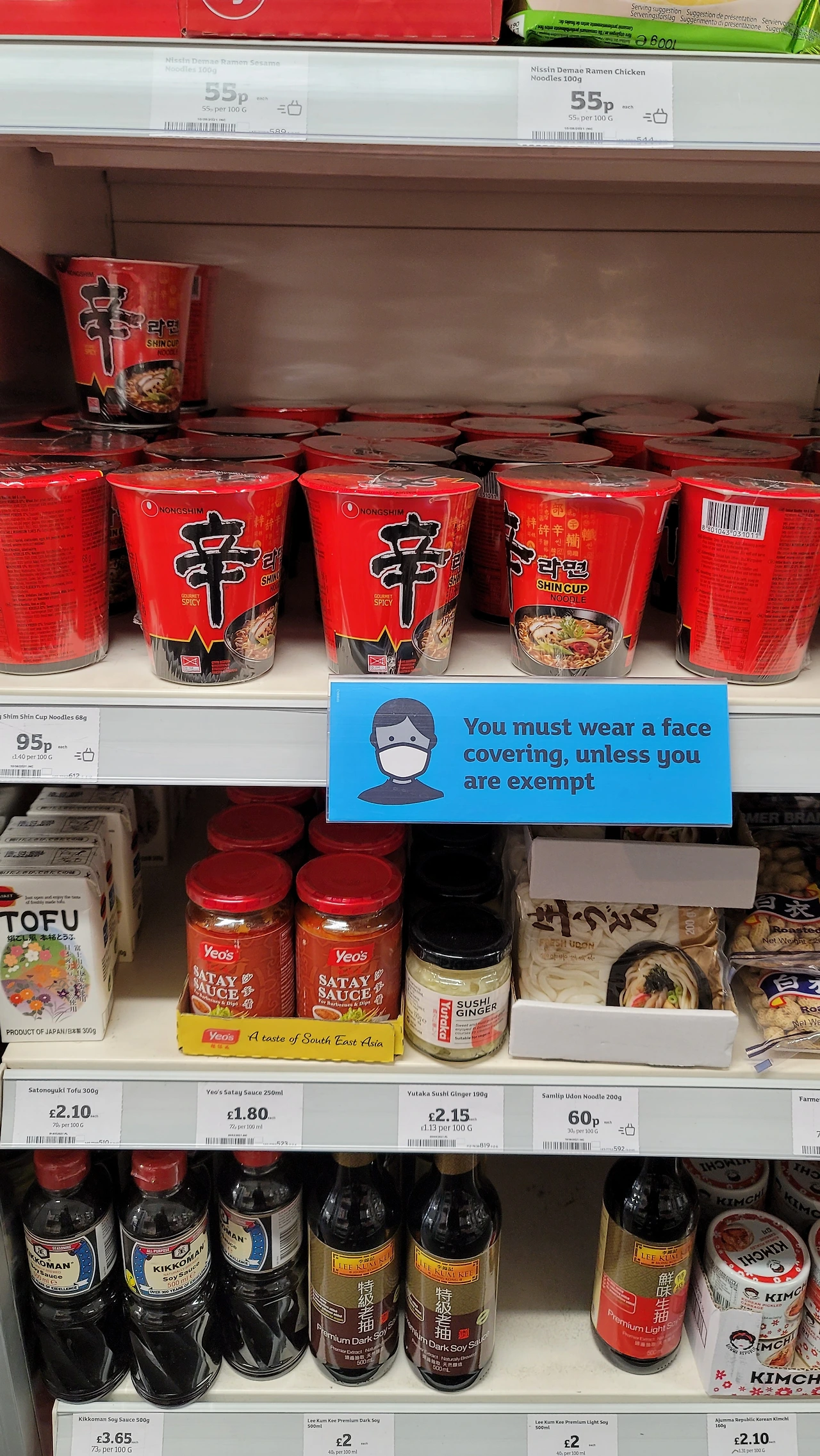 영국 Sainsbury's 에 파는 농심 신라면(왼쪽), 점심으로 먹은 베이컨 버섯 스파게티(오른쪽)