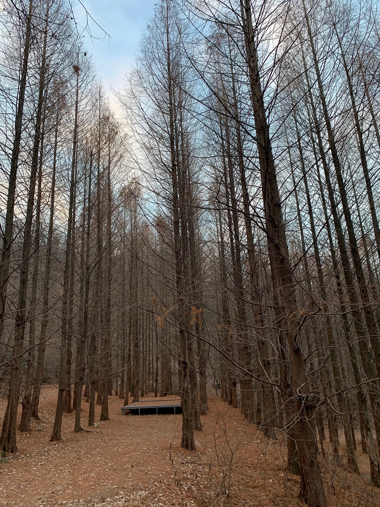 내려오는 길에 찍은 사진이다. 무슨 나무일까? 인위적으로 심은 나무여서 줄과 열이 맞춰져 있다. 키도 크고 아주 멋지다. '우리 뒷산에 이런 나무들이 있었네!' 자꾸 먼 곳만 보고 살다 보니 주변의 것들에 대해 관심을 덜 가졌나 보다. 오늘은 해보다 이 나무의 발견이 더 좋았다.