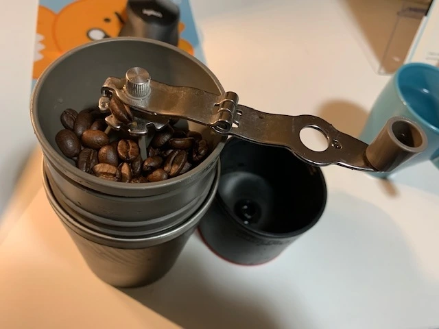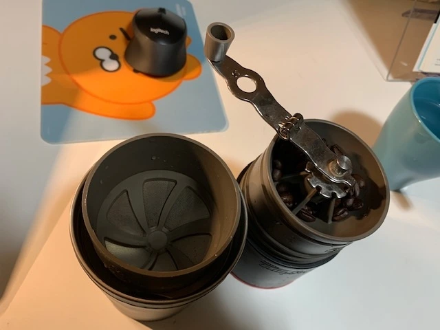 커피맛을 좌우하는 것은 크게 세 가지다. 원두 품종, 원두의 간 정도, 물의 온도이다. 생활인으로서 느끼는 건 요렇게 세 가지다. 이 커피메이커는 일체형이다. 커피를 갈 때 쓰는 손잡이는 접이식으로 되어 있다. 원두 분쇄 크기(?)에 따라 맛이 다른데 당연히 이것도 조절할 수 있다. 나사를 풀어야 한다는 번거로움이 있지만 매번 바꾸는 건 아니어서 나름 괜찮다.
