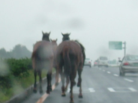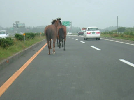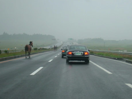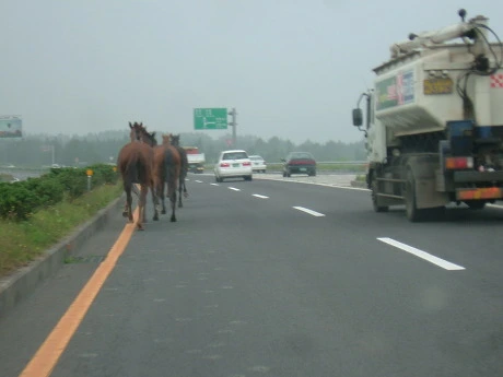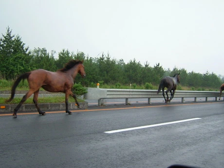 오늘 아침에 또 평화로에서 말이 죽었다. 경찰차와 부딪쳐 죽었다고 한다. 몇 년 전에 나는 말들과 함께 평화로를 달렸다. 말들과 함께 평화로를 달리던 생각이 다시 난다. 그때도 오늘처럼 비가 조금씩 오던 날이었다. 오늘 같은 날은, 말들도 참지 못하고 마구 달리고 싶은 모양이다. 그때 차 안에서, 내가 직접 찍은 사진들을 다시 보며 생각한다. 앞차와 뒤차 눈치도 봐야했다. 혹시 달리던 말이 내 차로 달려들까봐 걱정을 하면서 사진을 찍었던 기억이 새롭다.