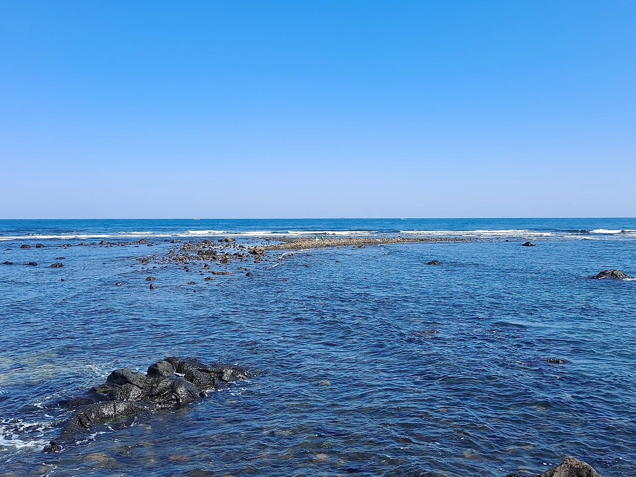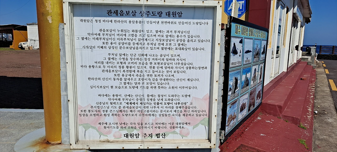 징검다리 건너는 사람들을 보면서 나는 그냥 앞으로 간다. 다리는 건너지 않았으니 나는 외도를 걷는 것이다. 다리를 건너면 내도 알작지와 이호태우해수욕장이 나온다. 아침에 그쪽으로 갔으니 오후에는 그냥 외도 쪽을 돌기로 한다. 이 길에서는 부처님을 만날 수 있다. 외도 앞바다에 누워계신 관세음보살님을 만날 수 있다. 사람은 누구나 자신이 보고자 하는 것들이 보인다. 대원암 주지스님께서 현몽하여 발견했다는 세계 유일의 해상 관음보살님도 사실은 아주 옛날부터 그 자리에 있었다. 원래 있던 바위에 이름을 붙였을 뿐이다.