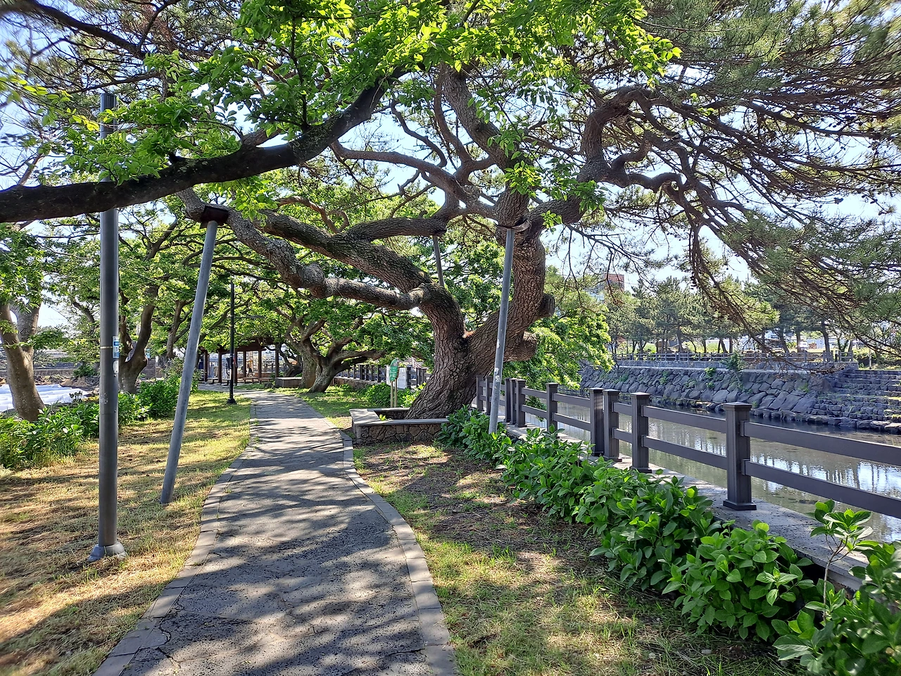 오늘은 징검다리를 건너지 않는다. 아침에 건넜으니 오후에는 건너지 않기로 한다. 오후에는 대원암 쪽으로 간다. 오후에는 해수관음보살님을 뵈러 간다. 월대 입구에도 운동기구가 있고 출구에도 운동기구가 있다. 오래된 나무 아래서 하는 운동이라서 여름에도 참 좋다.