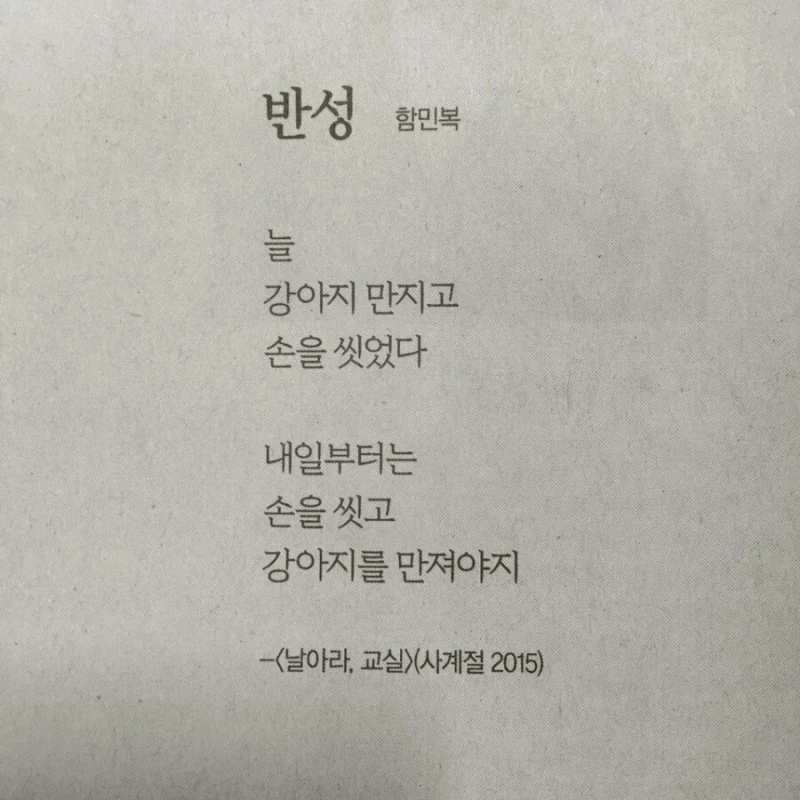 * 함민복 시인의 반성을 읽은 강아지