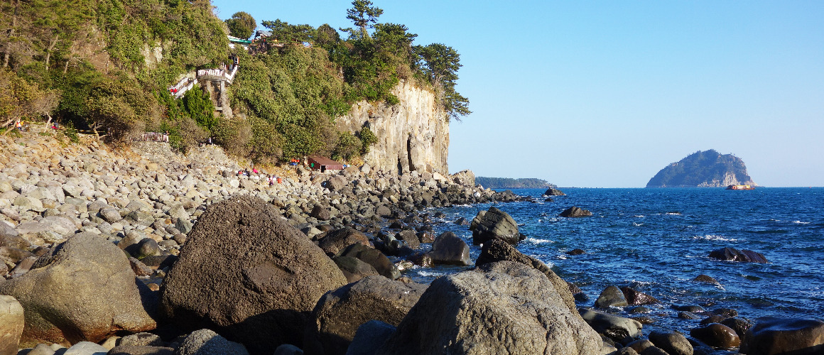 정방폭포는 천제연폭포, 천지연폭포와 더불어 제주도 3대 폭포라고 불린다. 높이 23m, 너비 8m에 깊이 5m에 달하며, 국내에선 유일한 뭍에서 바다로 직접 떨어지는 폭포다. 서귀포 시내에서 버스로 15분 거리에 있다. 입구의 매표소에서 표를 구매하고 소나무가 있는 계단을 따라 5분 정도 내려오면, 햇빛이 비쳐 은하수 빛깔로 변하는 정방 폭포를 볼 수 있다. 멀리서도 시원한 폭포 소리가 들리고, 폭포 양쪽으로 주상절리가 잘 발달한 수직 암벽도 볼 수 있다. 한라산에서 내려와 서귀포 시내를 관통하고, 바다 앞으로 하얗게 떨지는 정방폭포의 모습은, 외국의 거대 폭포처럼 웅장하진 않지만, 자연과 조화롭게 어울리며 단정하게 떨어지는 모습이 전통 수묵화를 감상하는 느낌을 준다.