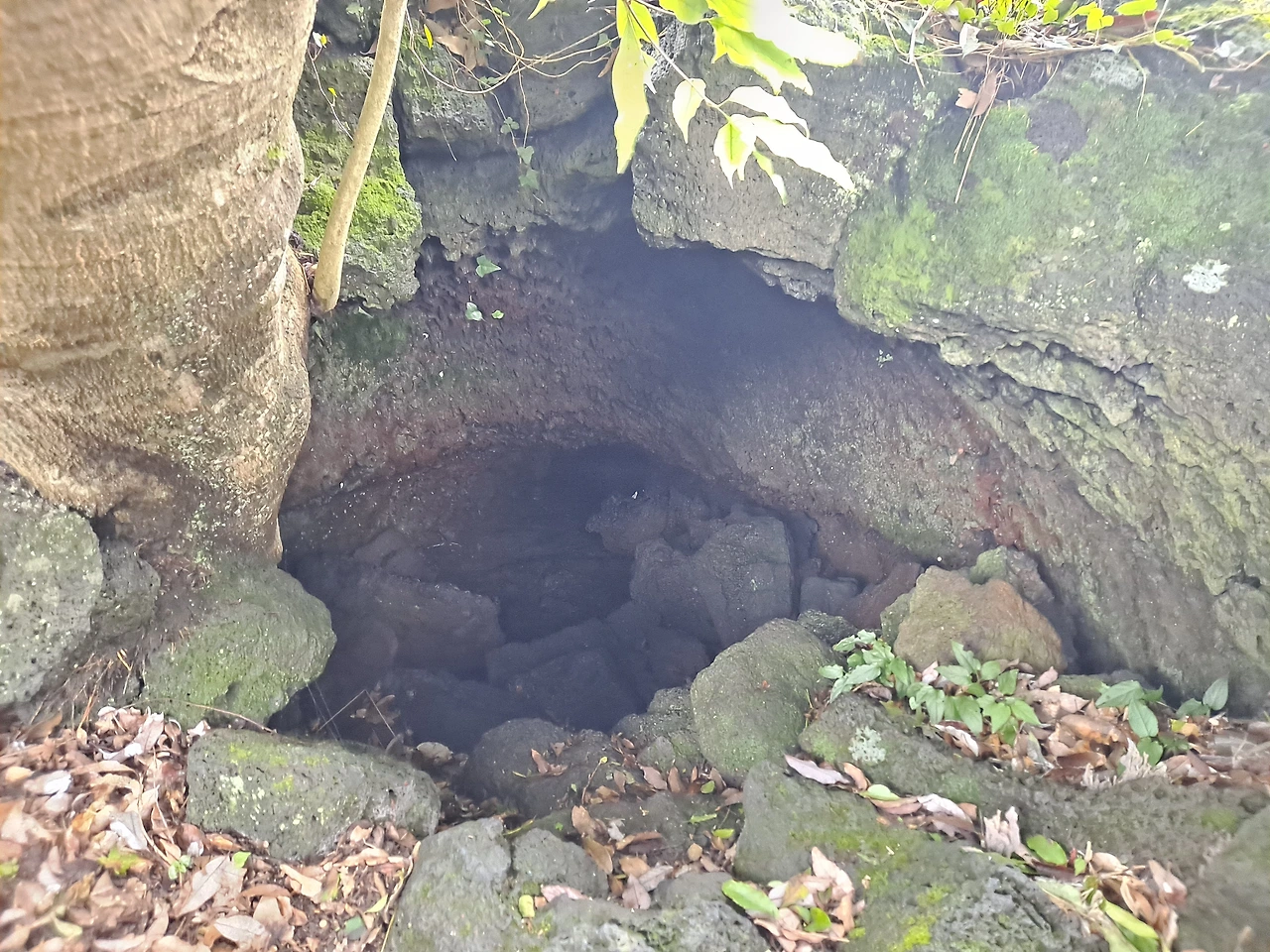 좁고 축축한 길을 기어서 따라 들어간다