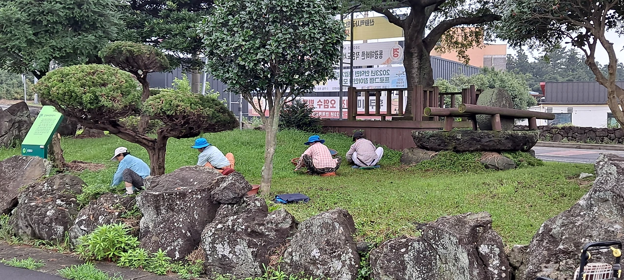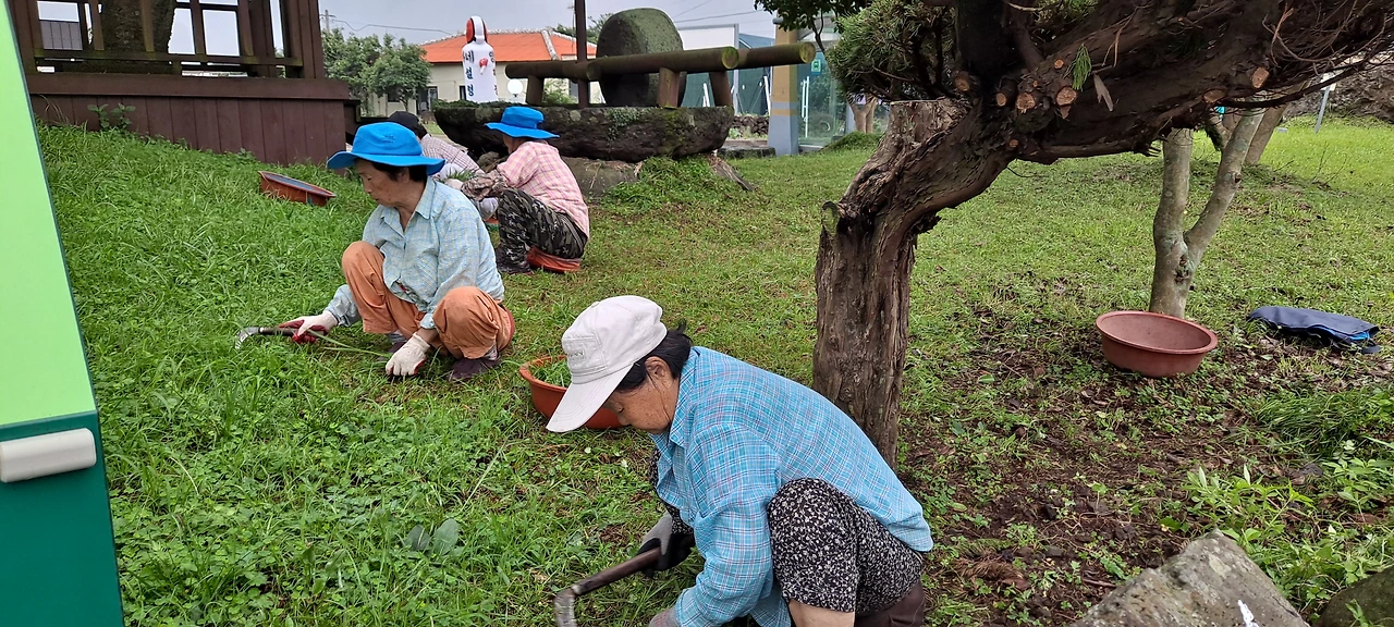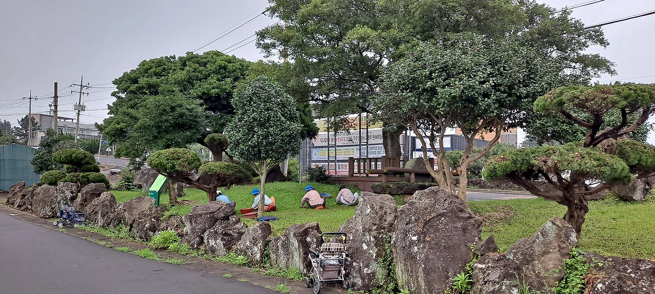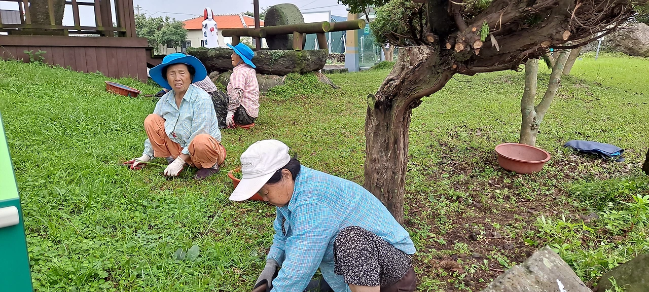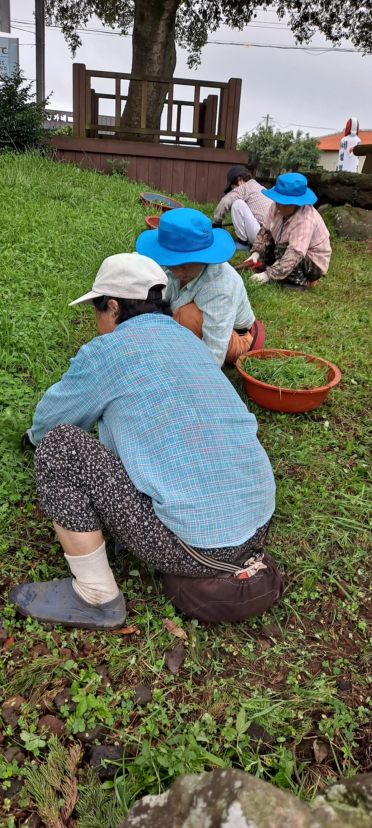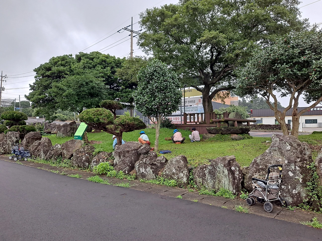할머니유모차 세워두고 풀을 뽑기 시작한다