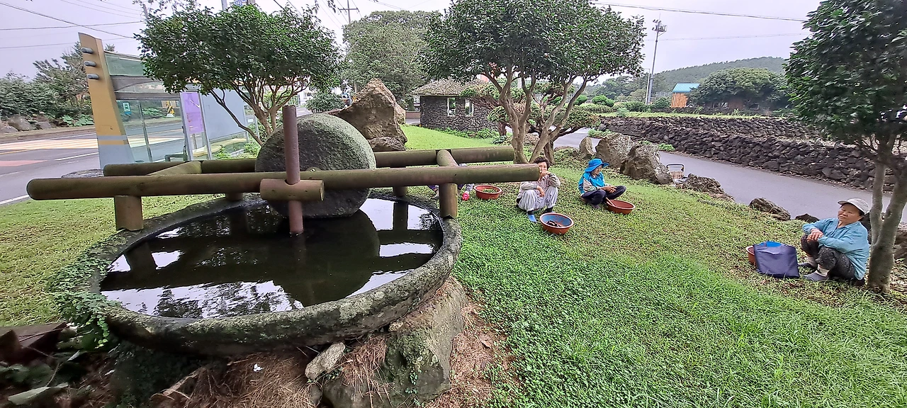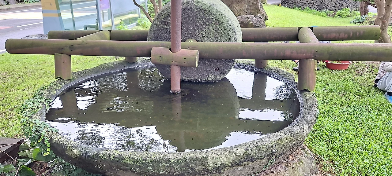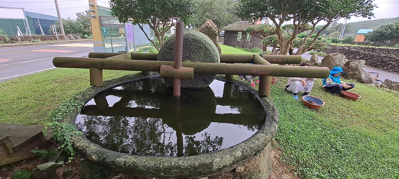 연자방아 아랫돌은 큰 물그릇 되어 하늘을 품는다
