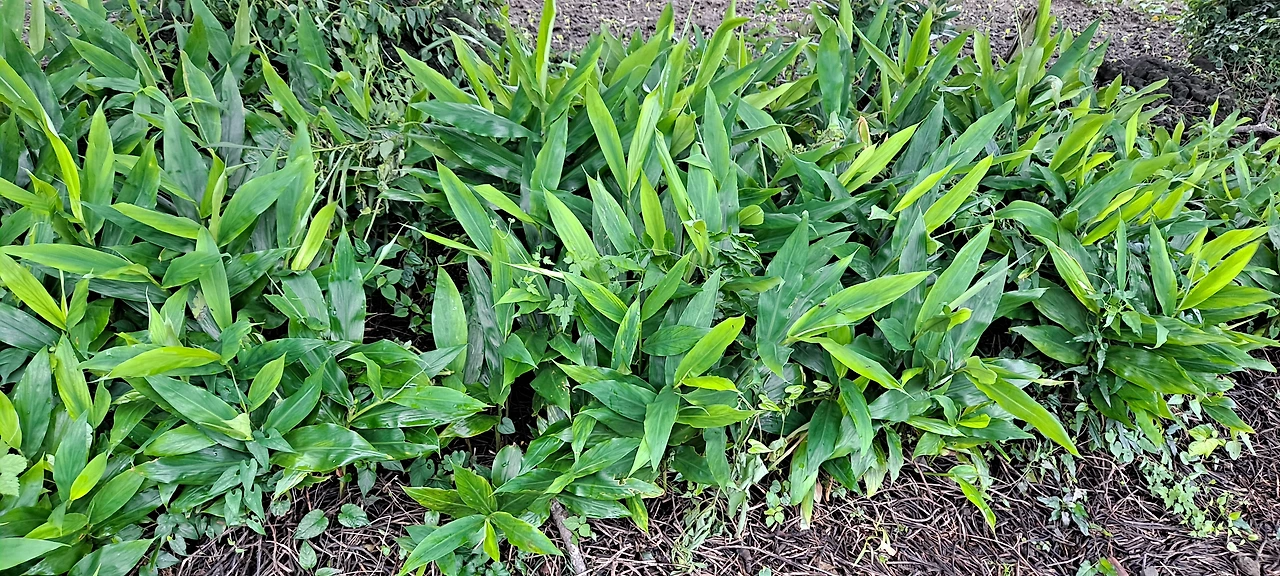 생강보도 훨씬 커버린 양하가 담장아래 모여있다