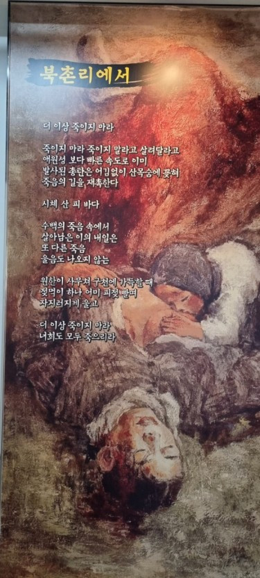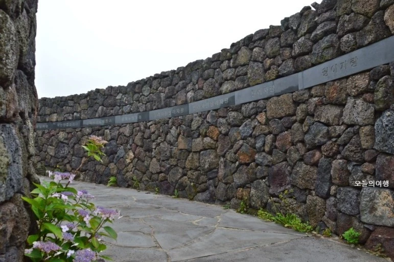 * 죽어가면서도 엄마는 아기를 재우는 자장가를 부른다. 웡이자랑~ 웡이자랑~ 나선형으로 조성된 비설 조형물을 맴돌듯이 찾아 들어가면서 음각되어있는 웡이자랑 자장가를 읽어본다. '웡이자랑 웡이자랑~' 후렴구에 젖어 나도 모르게 자장가가 되었다. 두 눈에서 눈물자국이 떨어진다. "'웡이자랑 웡이자랑. 우리 아긴 자는 소리. 놈의 아긴 우는 소리로고나. 웡이자랑 웡이자랑~~ 자는 건 잠소리여 노는건 남소리여" "웡이 자랑 웡이 웡이 자랑 자랑 웡이 자랑 우리 아기 잘도잔다 남의 애기 잘도 논다 자랑 자랑 자랑 도지밑에 검둥개야 앞마당 노는개야 자랑 자랑 자랑 우리애기 공밥주고 우리애기 재워주렴 자랑 자랑 자랑 웡이 자랑 웡이 자랑 웡이 자랑 자랑 웡이 자랑 자랑"